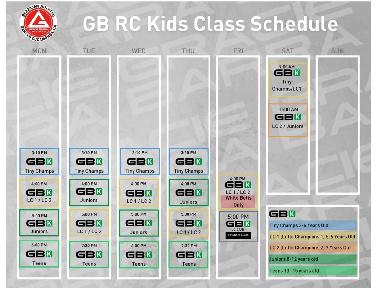 At Gracie Barra Rancho Cucamonga, we offer a full range of classes for kids, teens, and adults — from beginners taking their first steps on the mat to advanced students refining their techniques. Our structured curriculum ensures consistent progress, safety, and fun for everyone.